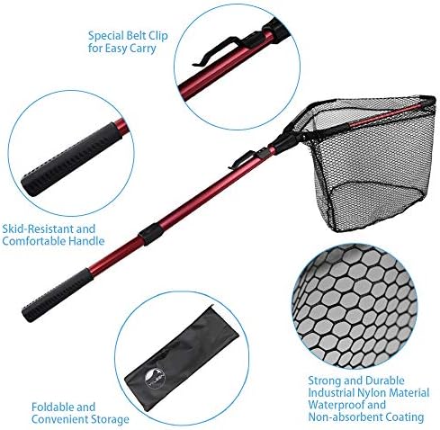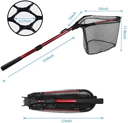 YVLEEN Folding Fishing Net – Foldable Fish Landing Net Robust Aluminum Telescopic Pole Handle and Nylon Mesh 16inch Hoop Size